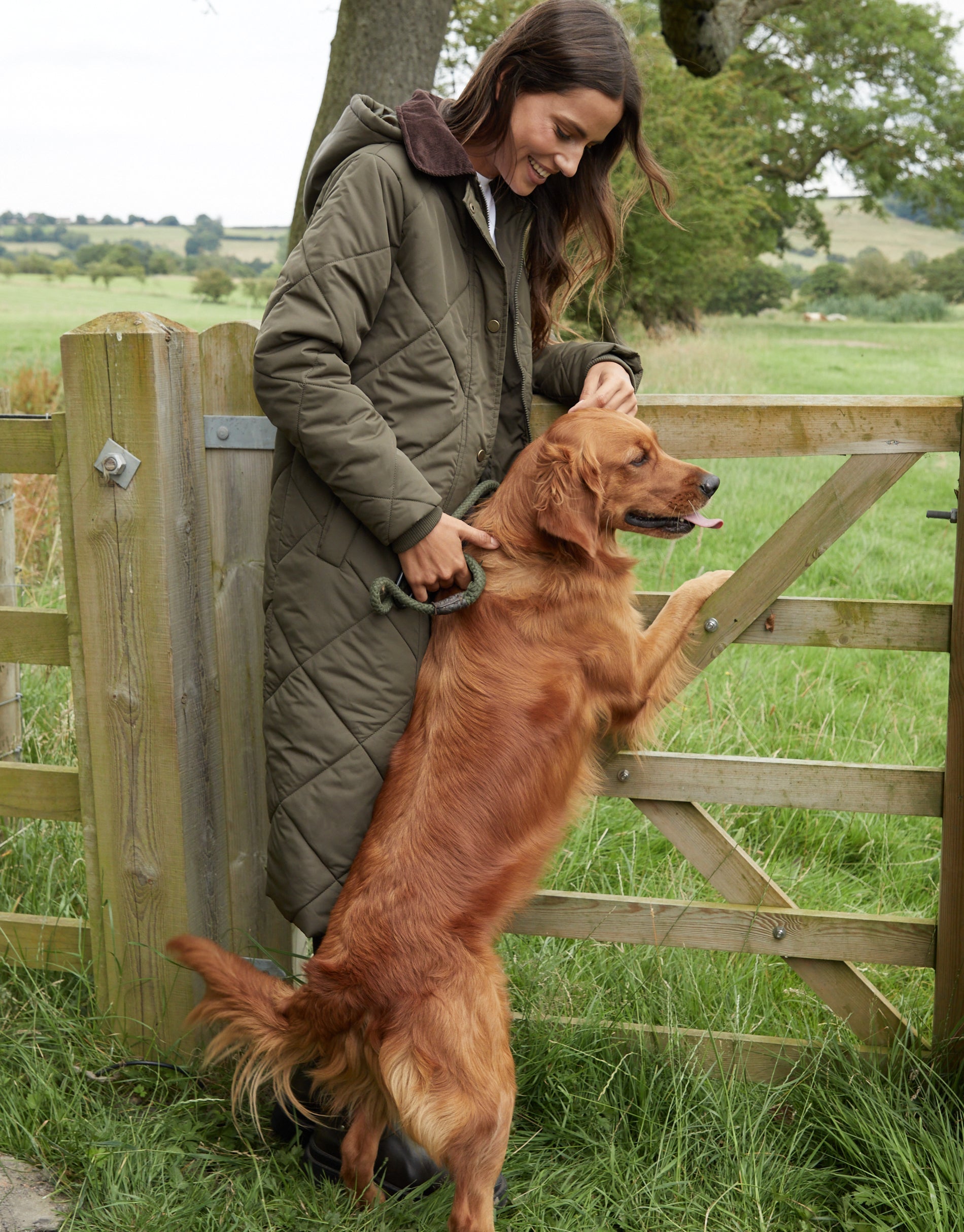 Women's Khaki Diamond Quilted Heritage Longline Barn Jacket with Removable Hood
